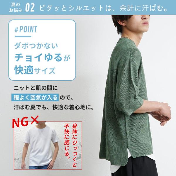 サマーニット メンズ セーター 5分袖 半袖 ケーブル編み ビッグニット